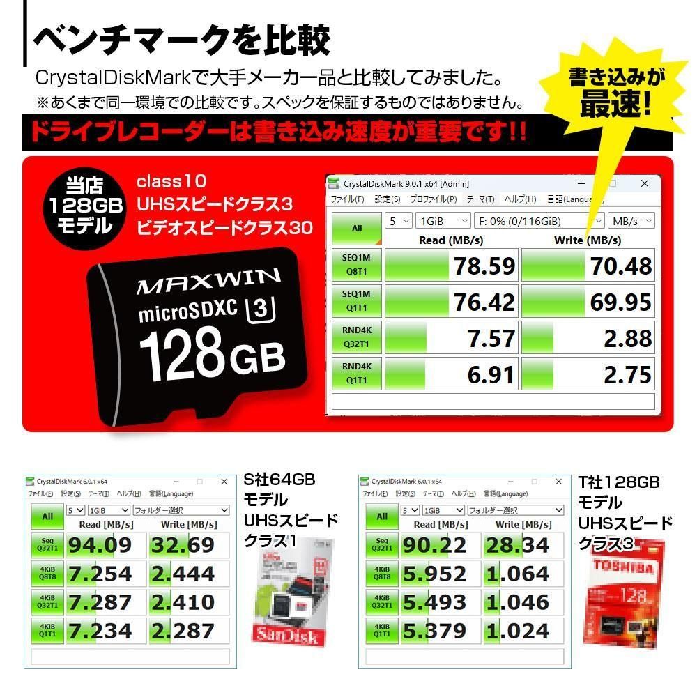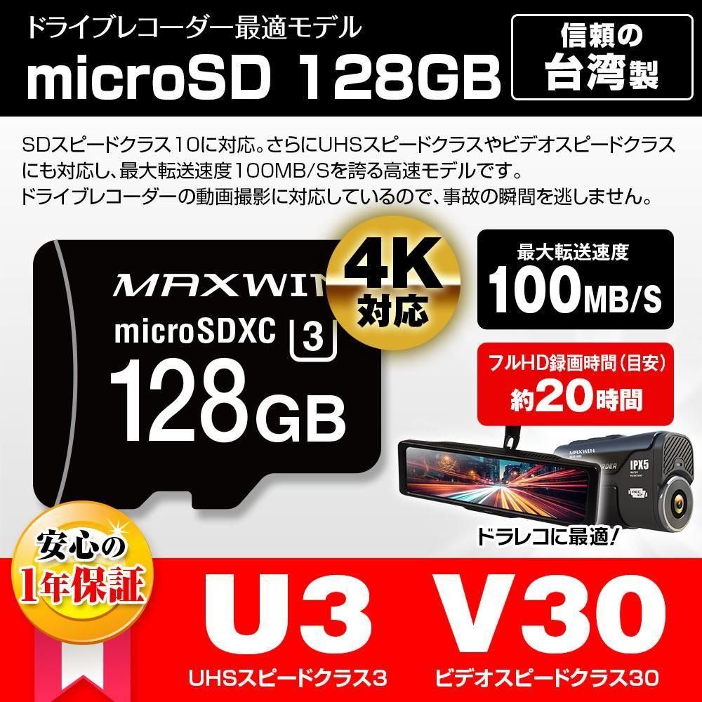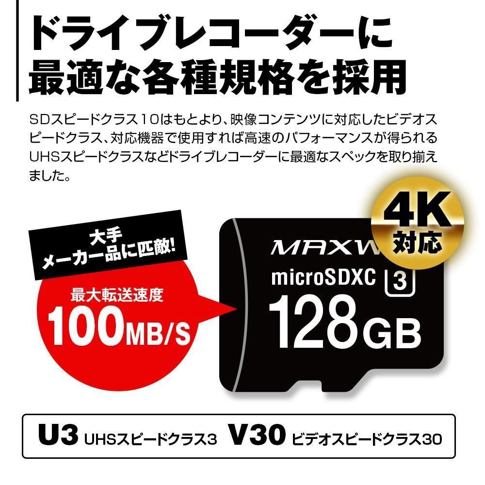 ドライブレコーダーに使用時に壊れてしまっても、交換にて対応いたします。 - 容量:128GB